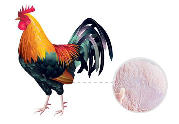 每 100g(手掌大小)含有約蛋白質 24g,可搭配各式佐料及食材烹調。雞腿肉 富含鐵質,脂肪量比雞胸肉多,適合白切、燉湯、燒烤等各式料理手法。 雞翅肉 含有豐富的膠原蛋白,雞翅(翅指翅身及翅腿)平均含脂肪量、蛋白質比雞腿多,味道甘美,適合煮湯、炸食。 雞 腳 富含蛋白質、鐵質,雞腳的脆骨及韌帶也具風味,適合滷味、燉食。 雞 肝 含豐富維生素 A、B1、B2、C 及鐵、磷、鈣等礦物質。 雞 心 膽固醇含量較高於豬心、牛心,肥胖者需適量食用。 雞 肫 健胃固脾,同時也是補鐵的最佳食材,適合煮滷。
